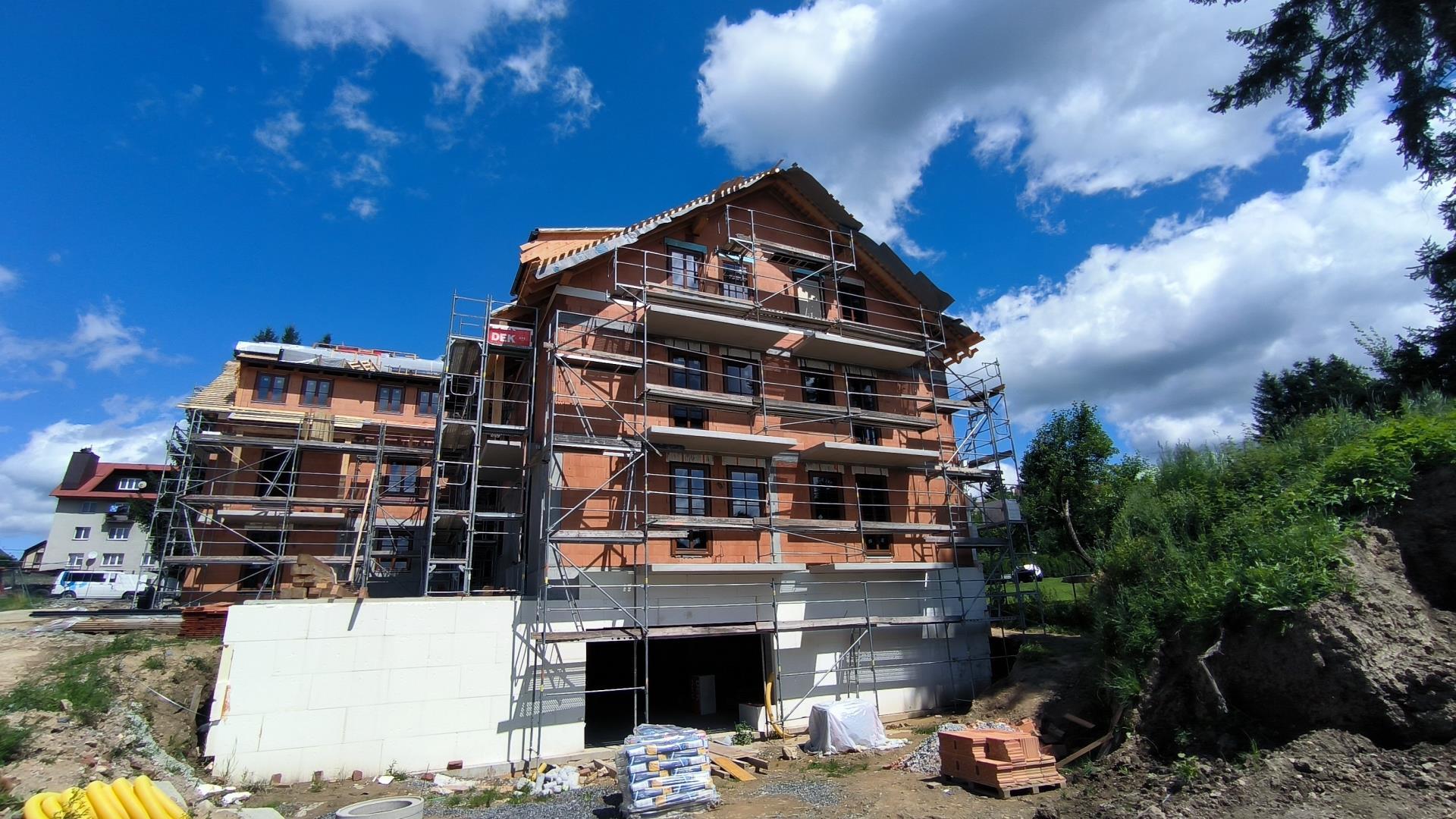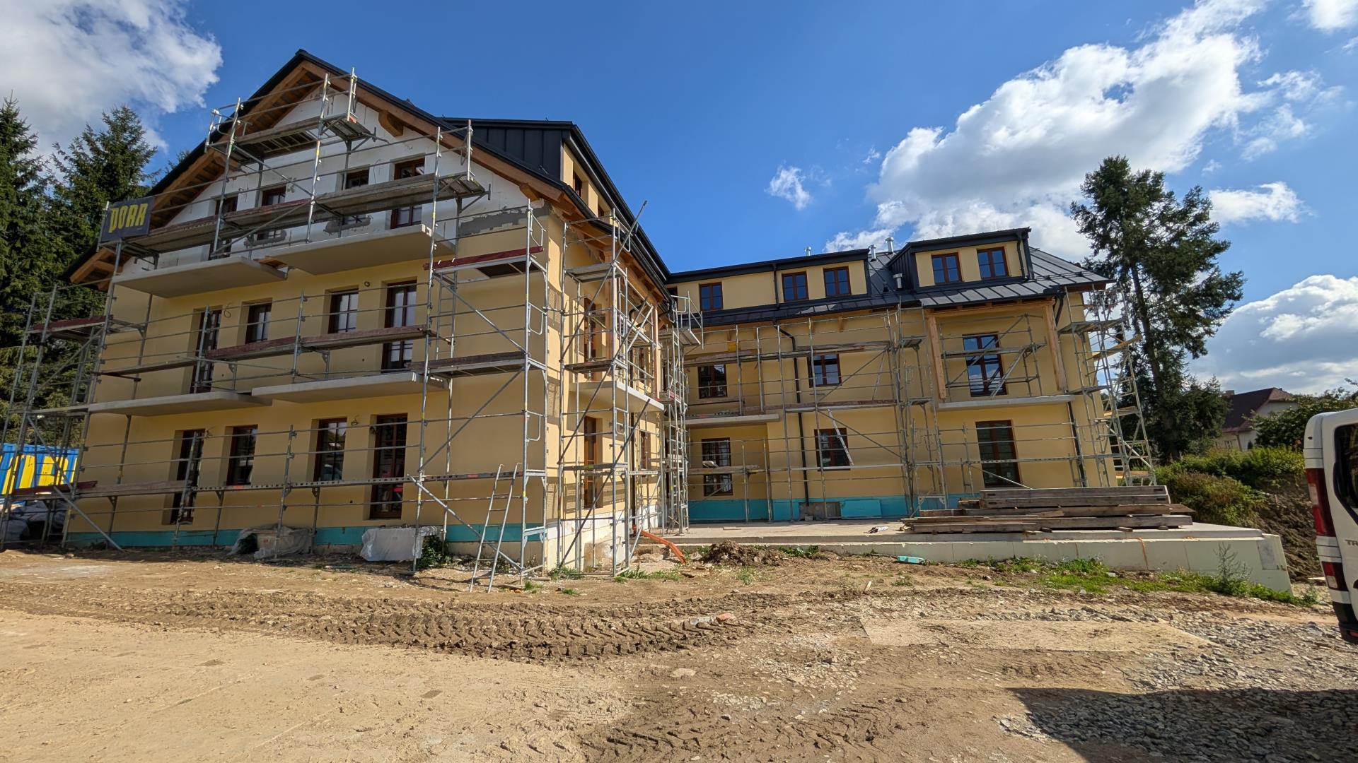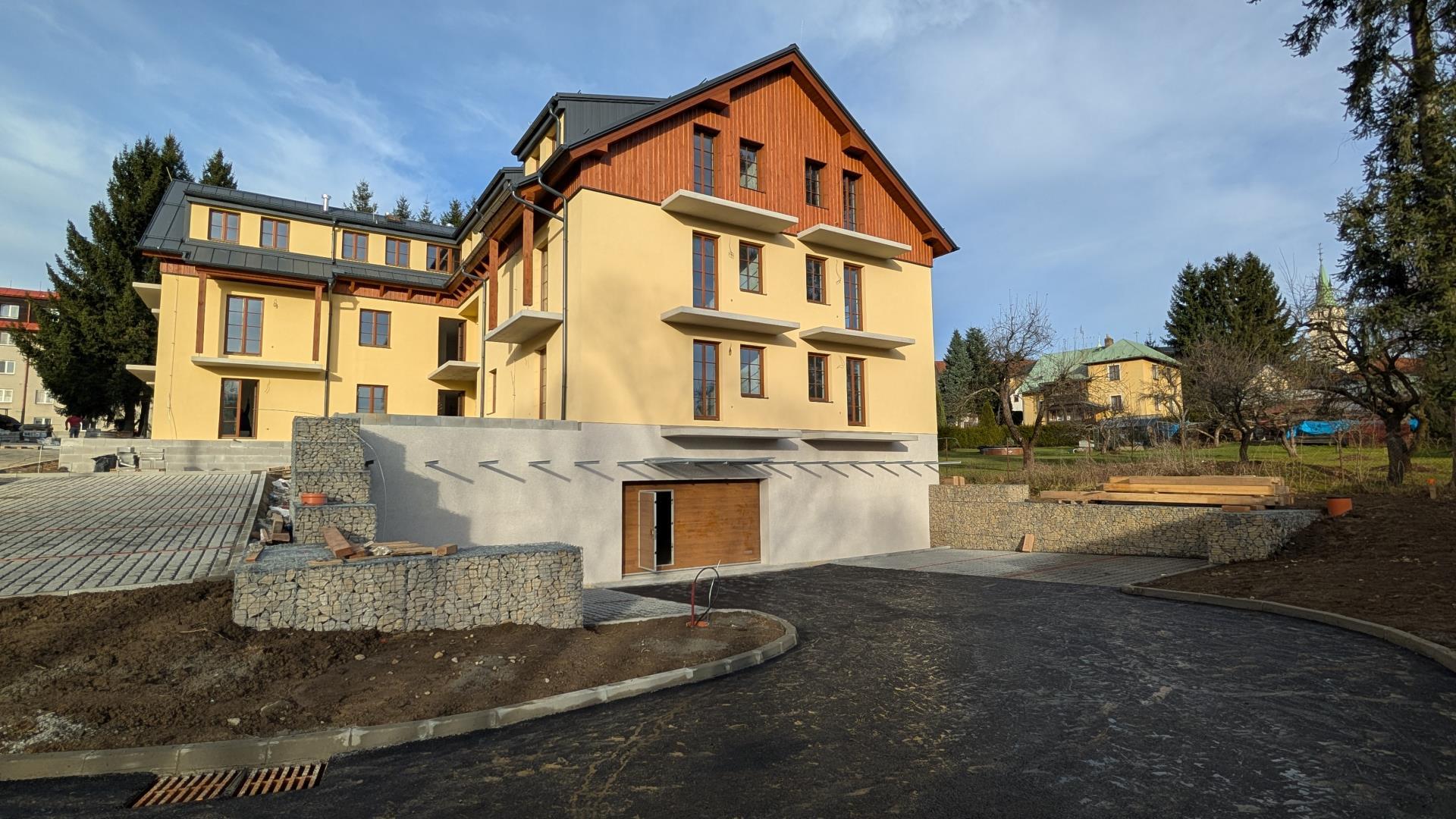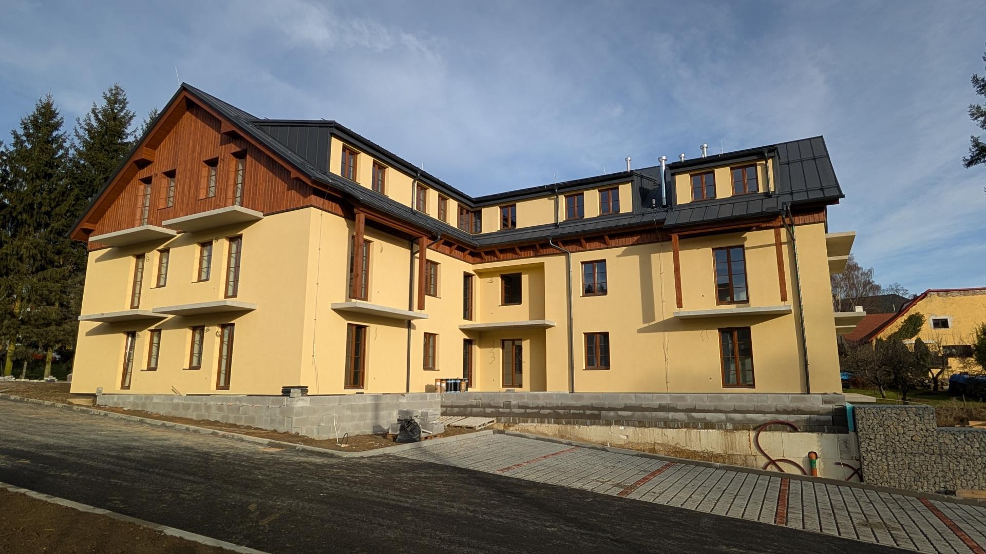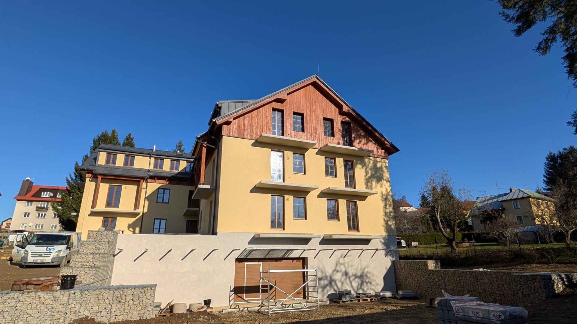 Komfortní apartmány – byty do osobního vlastnictví v klasicky zděném domě o 24 bytech vybavené výtahem a to již od suterénu. V bytovém domě bude 6 bytů 1+kk a 18 bytů 2+kk. Realizovány budou podle kvalitního autorského projektu arch. Radima Hucla a dokončeny na jaře 2026. V krásné poloze na jižně orientovaném pozemku, cca 4 min. pěší chůze od náměstí. Součástí této dobré investice je sklep a koupě venkovního parkovacího stání ke každému bytu nebo vnitřního krytého parkovacího stání. Dobře prosvětlené byty s krásným výhledem budou vybaveny kvalitními standardy, většina z nich mají balkóny nebo předzahrádku. Připojení na městskou výtopnu biomasou, samostatné měření tepla a spotřeby elektřiny v každém bytu.